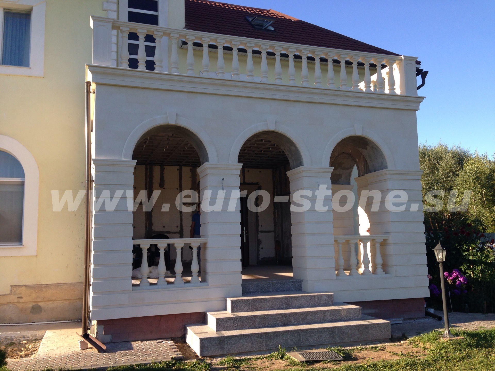 · В экстерьере — террасы, входные группы, фасады, цоколи.