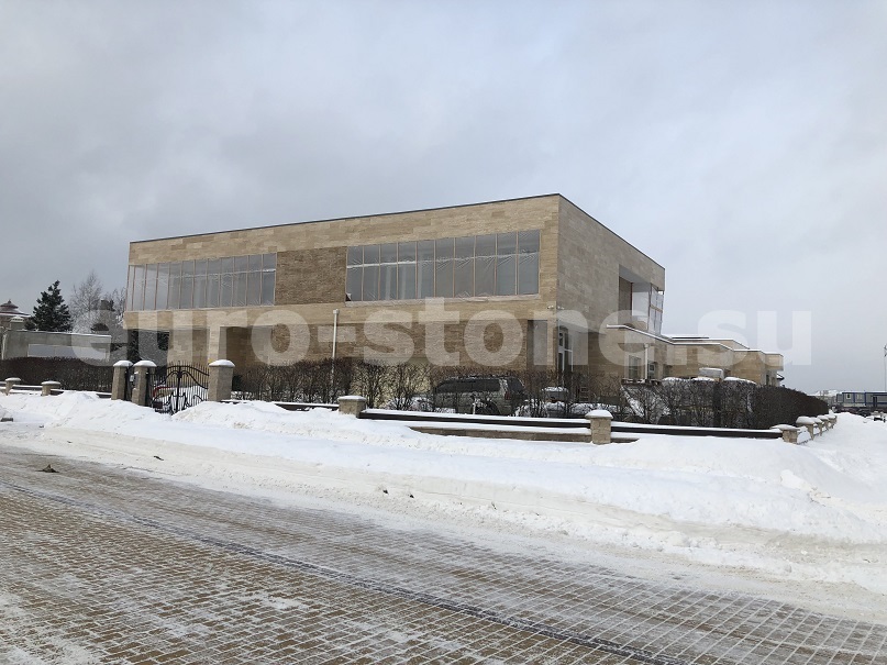 Фасады домов из травертина материалы