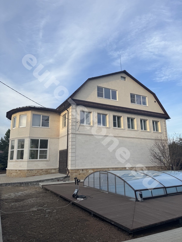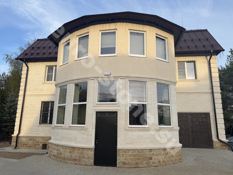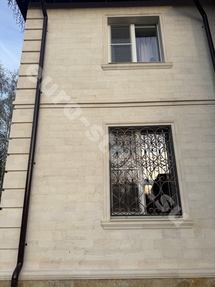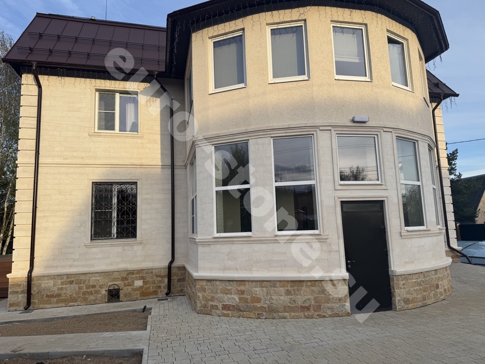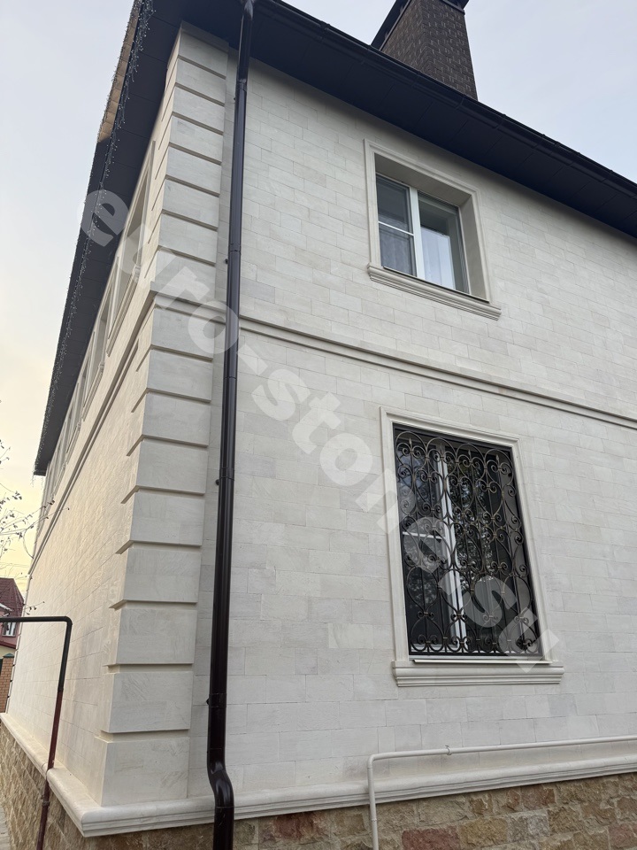 Облицовка дома бежевым известняком