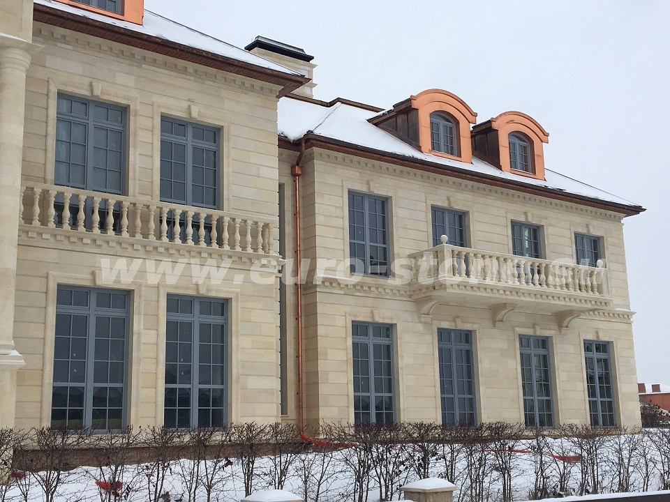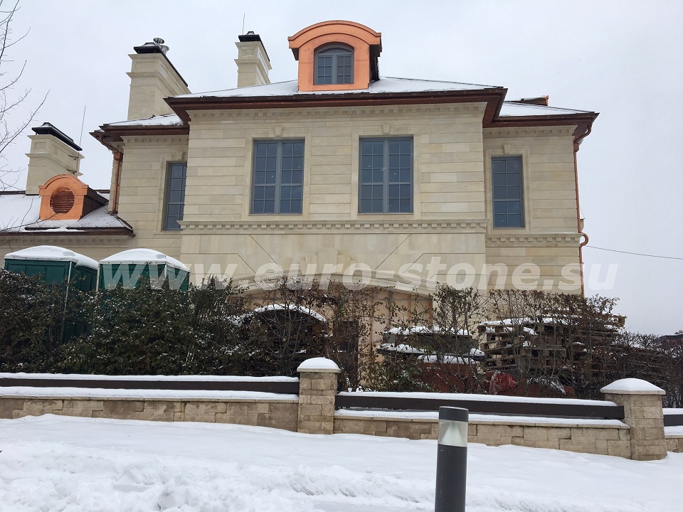 Фасад облицован песчаником — это гарантия надежности, долговечности и стильного внешнего вида. Песчаник придает дому естественную красоту, теплые оттенки и подчеркивает его архитектуру. Натуральный камень устойчив к морозу, влаге и солнцу, а при правильном монтаже служит более 100 лет. Компания ЕвроСтоунГрупп предлагает прямые поставки материала, бесплатные образцы и консультацию.