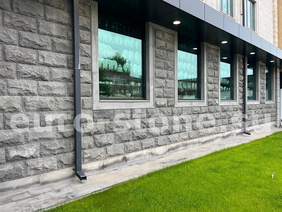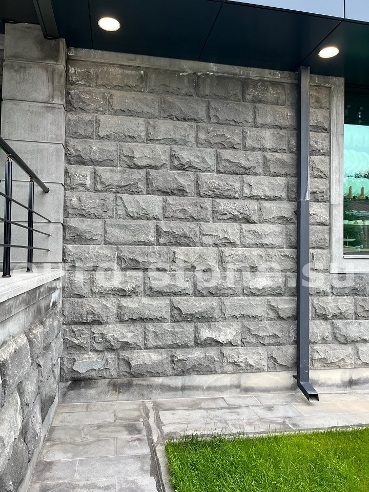 Компания ЕвроСтоунГрупп предлагает колотый базальт — натуральный вулканический камень с фактурной поверхностью, получаемой при раскалывании блоков вручную. Неровный природный рельеф придаёт облицовке эффект брутальности и подчёркивает естественное происхождение материала. Колотый базальт выбирают для создания прочных и выразительных фасадов, цоколей, дорожек и декоративных элементов.